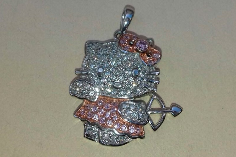 Colgante de la Hello Kity con flecha de cupido en plata rodiada y circonitas